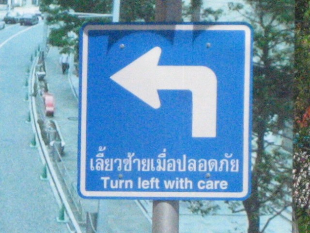 ป้าย "เลี้ยวซ้ายรอสัญญาณไฟ": หมายความว่าต้องรอให้สัญญาณไฟเปลี่ยนเป็นไฟเขียวก่อนจึงจะเลี้ยวได้