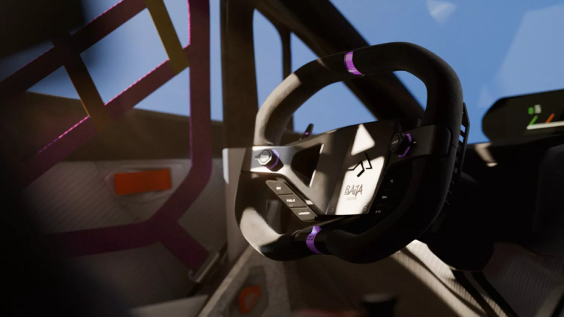พวงมาลัยถูกออกแบบเป็นทรงสี่เหลี่ยมเพื่อการควบคุมที่เฉียบคม พร้อมหน้าจอดิจิทัลขนาดเล็กที่แสดงข้อมูลที่จำเป็นโดยไม่บดบังทัศนวิสัย ภายในตกแต่งด้วยวัสดุพรีเมียมอย่าง Alcantara และคาร์บอนไฟเบอร์แบบเปลือย ที่ให้ทั้งความหรูหราและความดิบดุดันไปพร้อมกัน นอกจากนี้ยังมีไฮไลท์เป็นตาข่ายนิรภัยที่สามารถปรับเปลี่ยนสีได้ เพิ่มลูกเล่นและความสนุกให้กับการตกแต่งภายใน