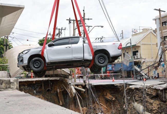 เปิดทะเบียนรถกระบะ Toyota รอดหวุดหวิดเสี่ยงตกแหล่ไม่ตกแหล่ ถนนทรุดหน้าโรงพยาบาลวชิรพยาบาล คาดคนบนรถหนีออกมาได้แล้ว