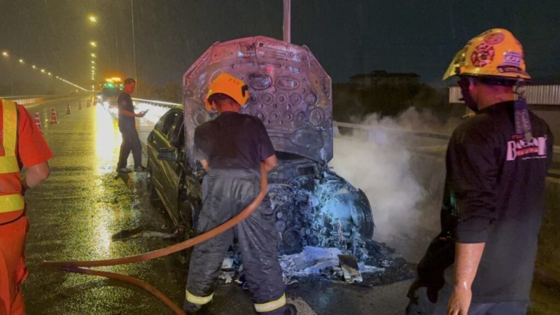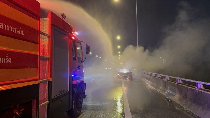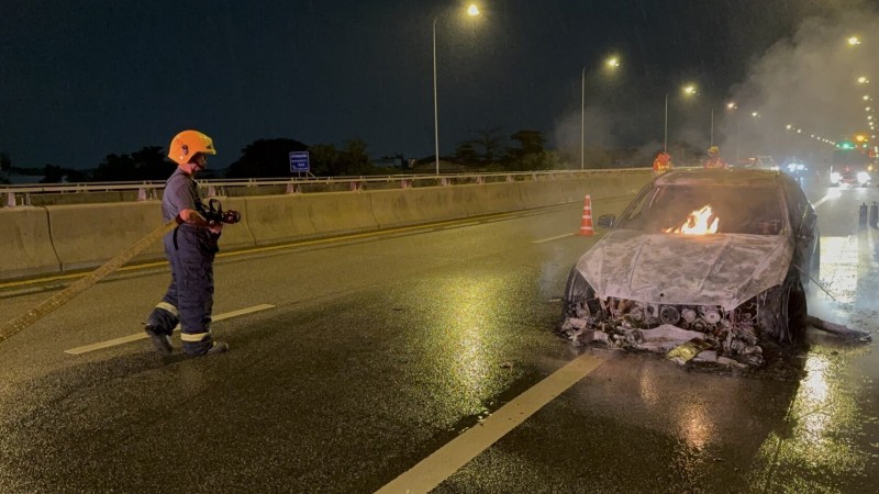 สรุปเหตุการณ์ไฟไหม้รถเบนซ์บนทางด่วน: