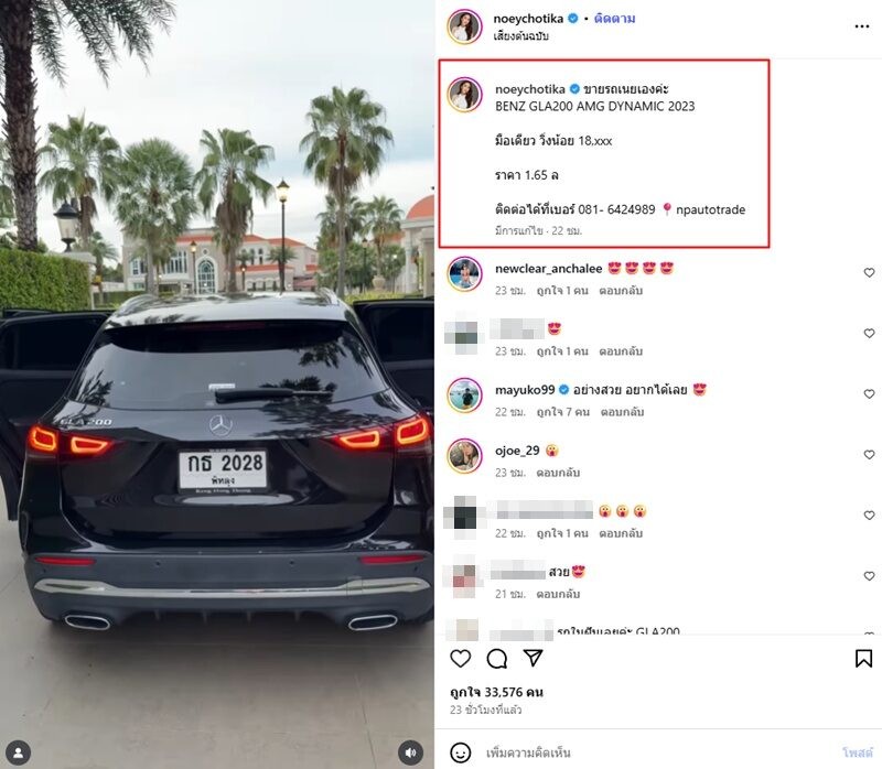 เนย โชติกา โพสต์ขายรถหรู BENZ GLA200