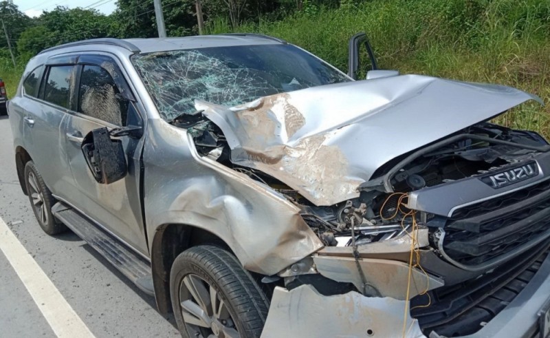 นายภักดี เพียรฤทธิ์ อายุ 52 ปี ซึ่งเป็นพ่อค้าลอตเตอรี่ กำลังขับรถยนต์ SUV ยี่ห้ออีซูซุ รุ่น MUX เพื่อเดินทางไปขายลอตเตอรี่ที่ จ.นครราชสีมา เมื่อมาถึงที่เกิดเหตุได้พบช้างป่าขนาดใหญ่กำลังข้ามถนนจึงจอดรถรอ แต่มีรถกระบะอีกคันขับสวนมาด้วยความเร็ว ทำให้ช้างตกใจและหันมาใช้เท้าหน้า 2 ข้างเหยียบเข้าที่ฝากระโปรงและกระจกหน้ารถของนายภักดีจนพังเสียหายยับเยิน และยังทิ้งรอยเท้าไว้ที่ข้างรถ ก่อนที่ช้างจะเดินเข้าป่าไป