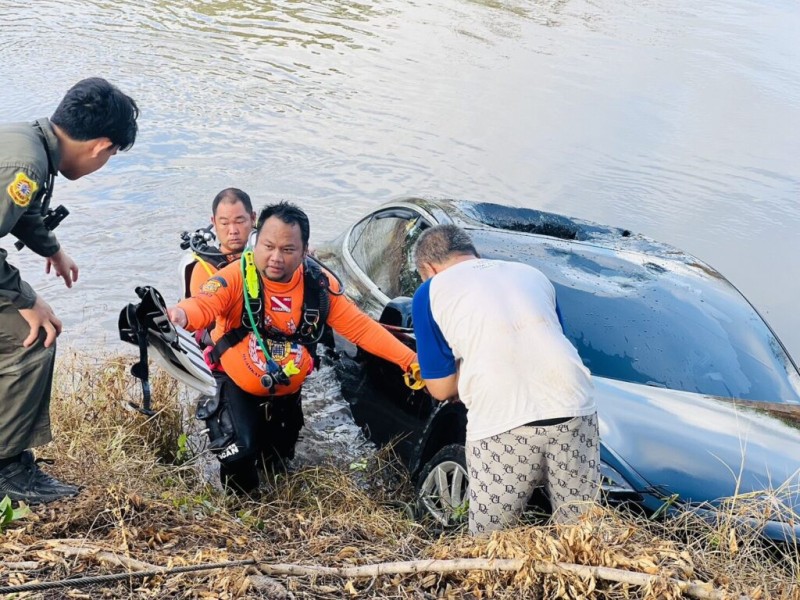 เหตุการณ์นี้เกิดขึ้นเมื่อเวลา 05.30 น. วันที่ 15 ตุลาคม ที่ถนนเลียบคลอง 10 อ.หนองเสือ จ.ปทุมธานี โดยมีรถยนต์เก๋งไฟฟ้า ยี่ห้อ TESLA Model 3 เสียหลักพุ่งตกลงไปในคลองจนรถจมมิด