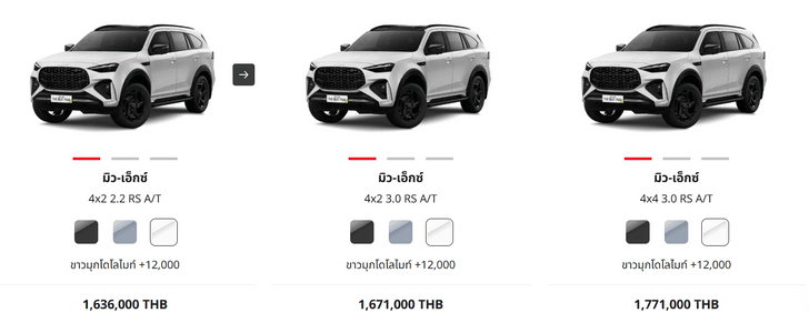 หมายเหตุ: ราคาข้างต้นเป็นราคาเริ่มต้น อาจมีค่าใช้จ่ายเพิ่มเติมสำหรับสีพิเศษ (+12,000 บาท)