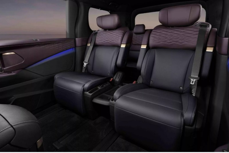 เบาะแถวสอง: เป็นแบบ “Lounge Chair” พร้อมฟังก์ชันเอนปรับไฟฟ้าและที่วางเท้า สำหรับการเดินทางแบบผู้บริหาร